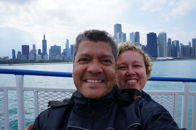 Esse passeio aconteceu meio que na vontade de fazer outro rsrsrsrs, ou seja , eu queria fazer o passeio que se via o skyline da cidade e ao conversar com o rapaz no quiosque foi dito que não seria ali e que teria que ir até o Navy Pier , porem como faço roteiro para aproveitar melhor o tempo e o dia eu não quis ir até lá, então fizemos esse passeio que roda toda a extensão do rio e que bom que fiz , pois é lindo e gostoso demais , tem bar dentro do barco, é todo aberto, um pouco menor que o de NY , mas muito bom e se um dia voltar a Chicago farei novamente , porem a noite que deve ser magnífico.